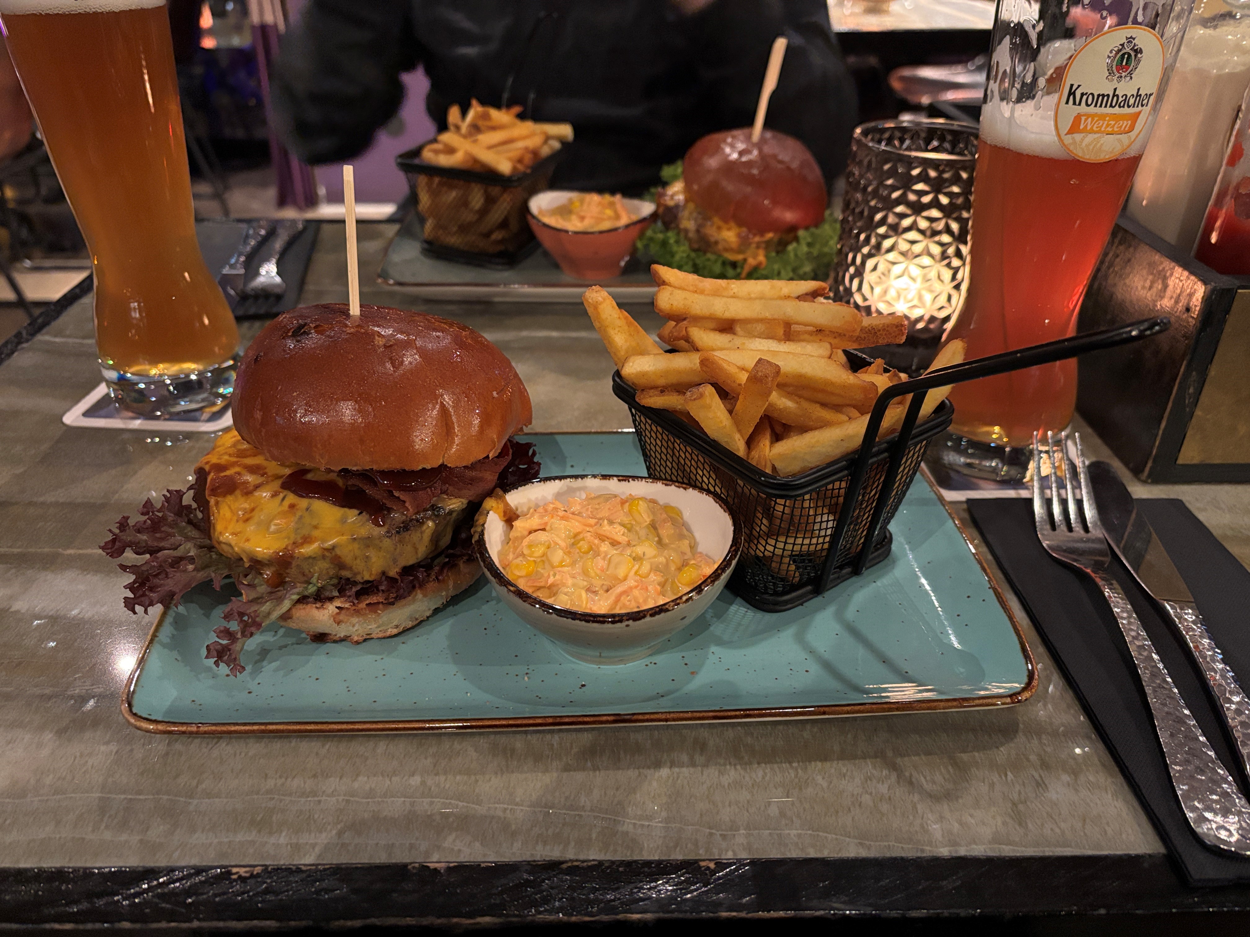 Das Ambiente ist entspannt und passt gut zum Viertel: locker, urban, angenehm dekoriert Insgesamt ein guter Spot, wenn man Lust auf einen richtig guten Cheeseburger hat, der nicht trendig sein will, sondern einfach schmeckt.